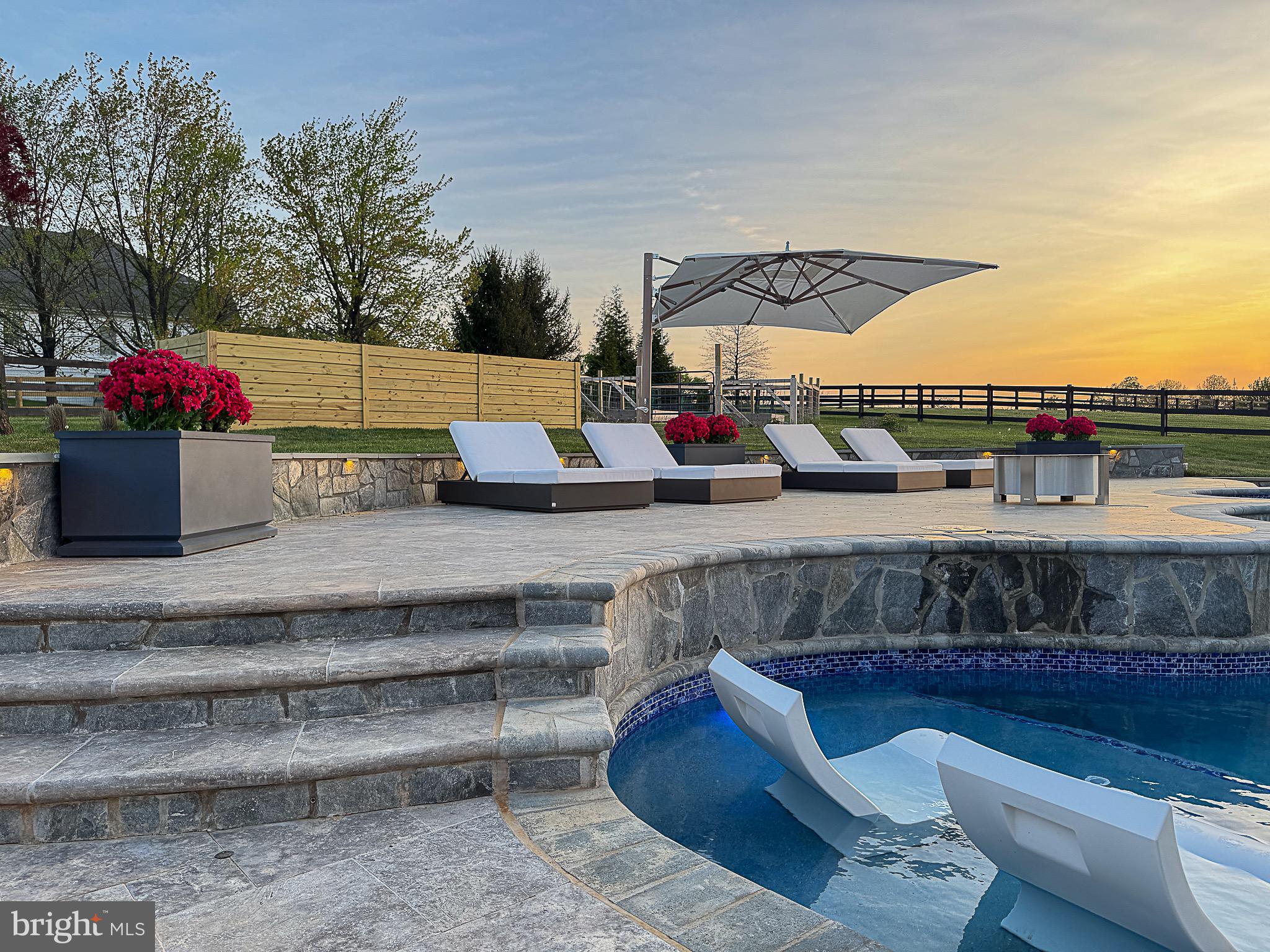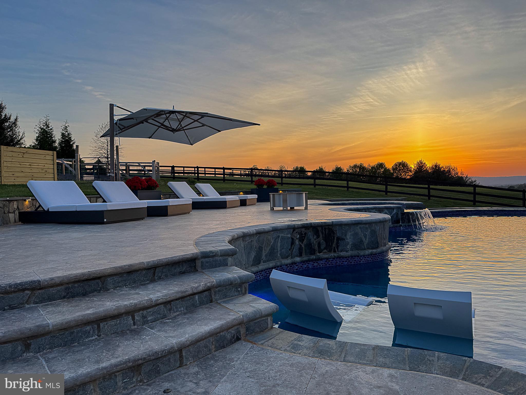 Relax and entertain in style with the brand new custom saltwater pool, featuring a tanning shelf, swim-up bar ledge, and an elegant 8-foot spa. Amazing sunset and mountain views from the pool or front patio area. The multi-tiered pool deck offers distinct entertaining areas, while the pool house, adorned with an upgraded light package and an 8-foot gas fireplace, promises comfort and luxury. Sophisticated outdoor kitchen with marble countertop, complete with a 48-inch grill, pizza oven, and a bar that seats 10-12 guests comfortably.