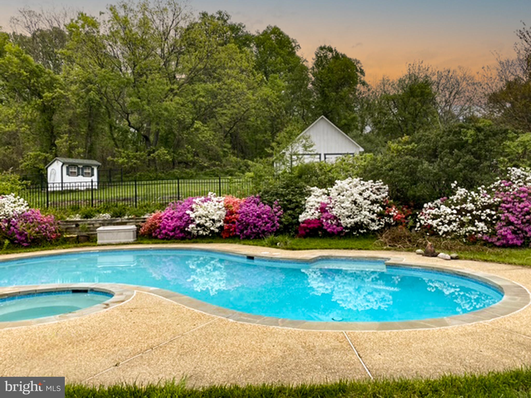 Kitchen with granite, maple cabinets, equipped with a cooktop and double oven, breakfast area. Enjoy your morning coffee in the three-season sunroom, which opens up to a deck and pool with an attached spa--perfect for unwinding after a long day. The primary bedroom with new carpet is complete with a sitting room and two walk-in closets. The finished lower level offers a recreation room, wet bar, media room and a full bath for additional living space. Roof (Dec 2024), Barn (2015), Both HVAC's (2015), Hot Water Heater (2016), Appliances all updated, Well Pump and holding tank (2024). Sellers offering $10K cosmetic allowance for flooring.