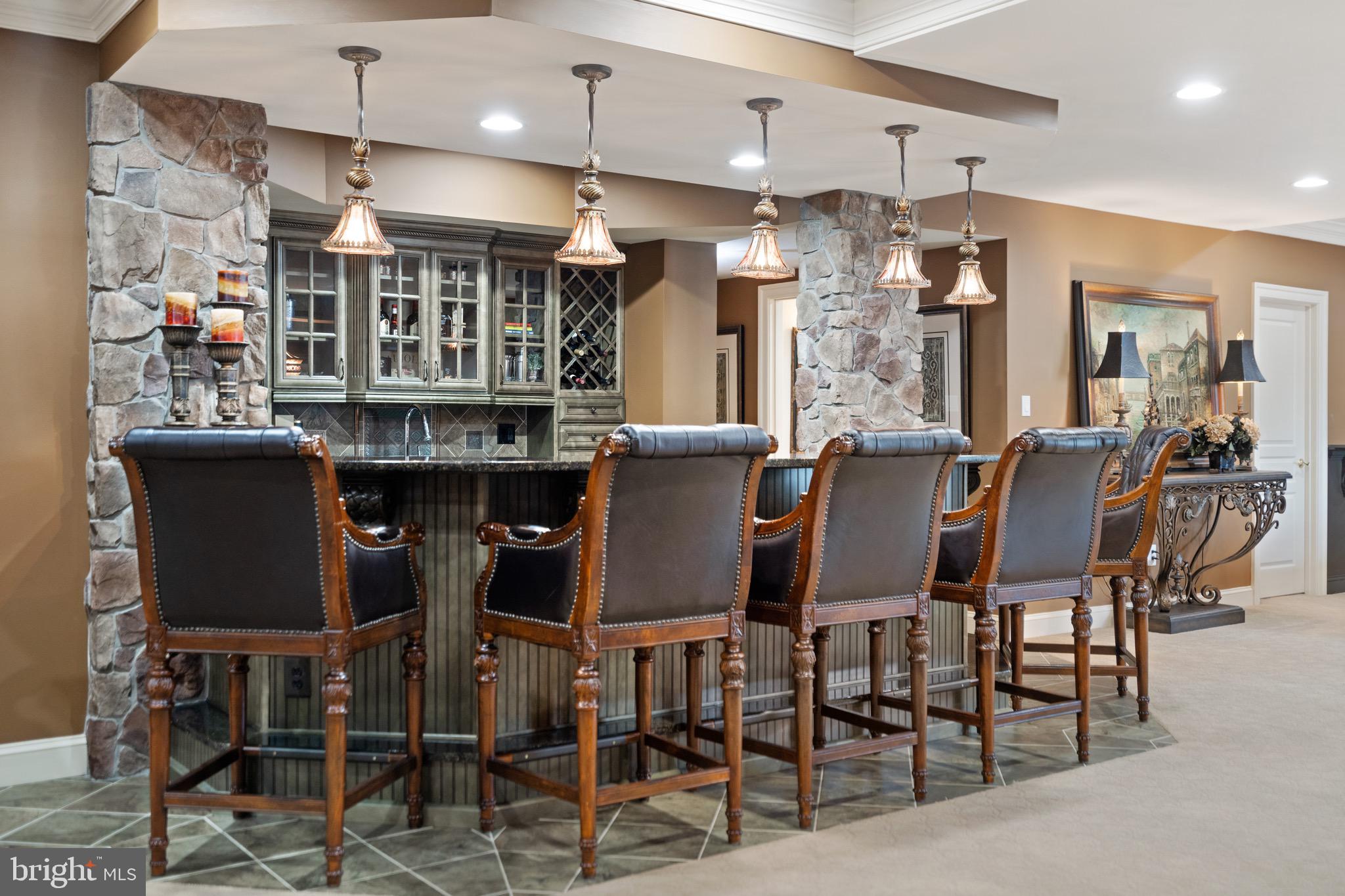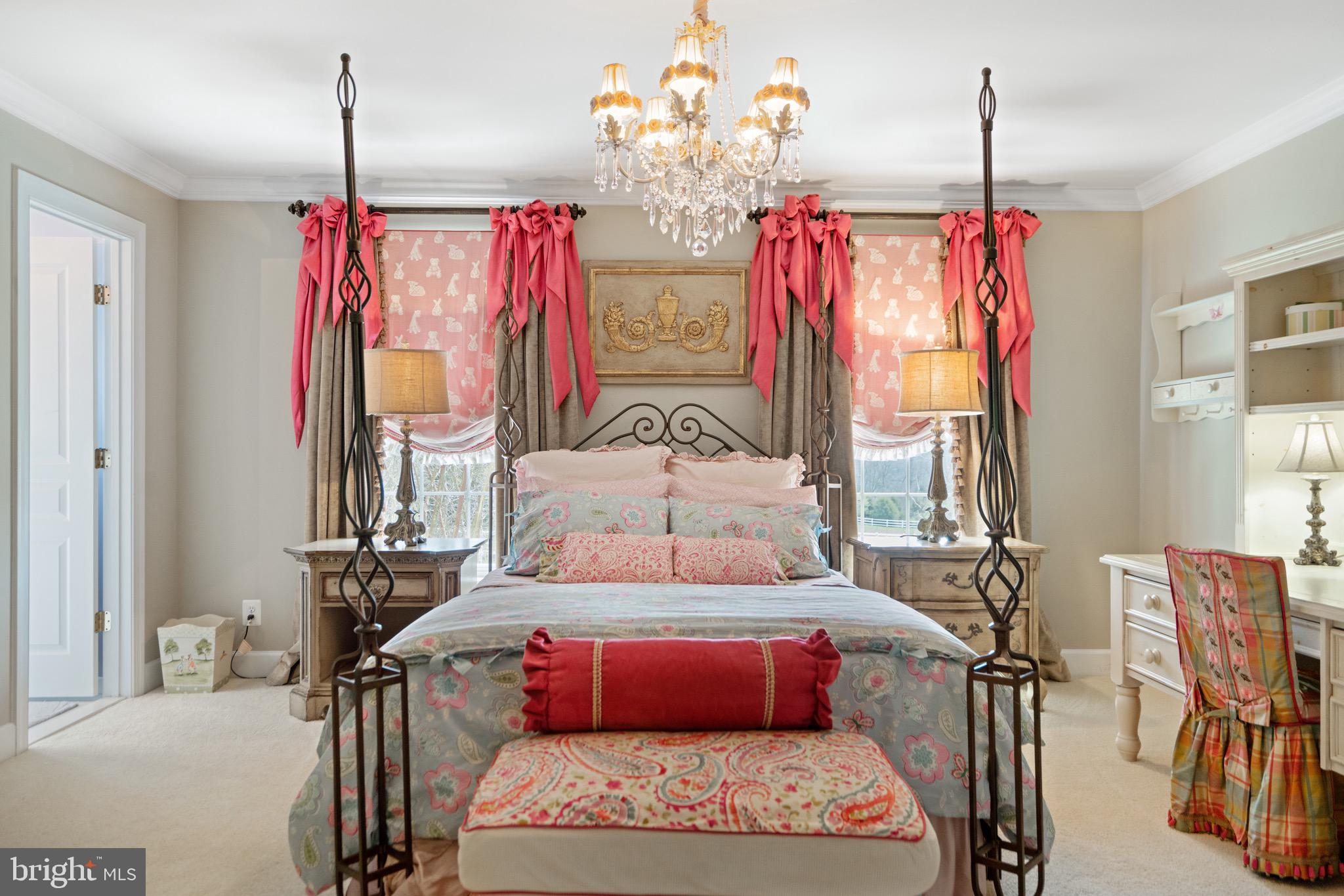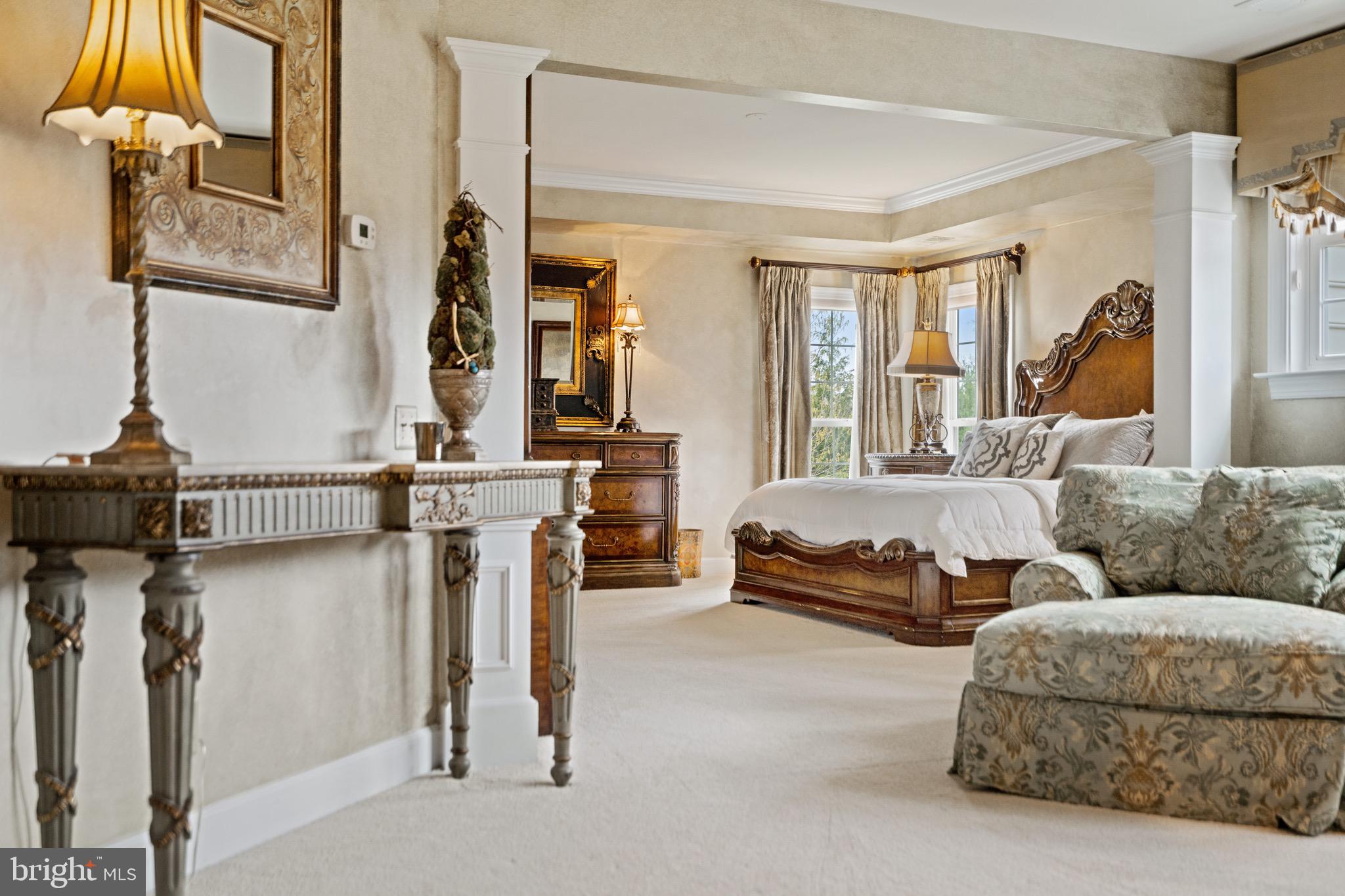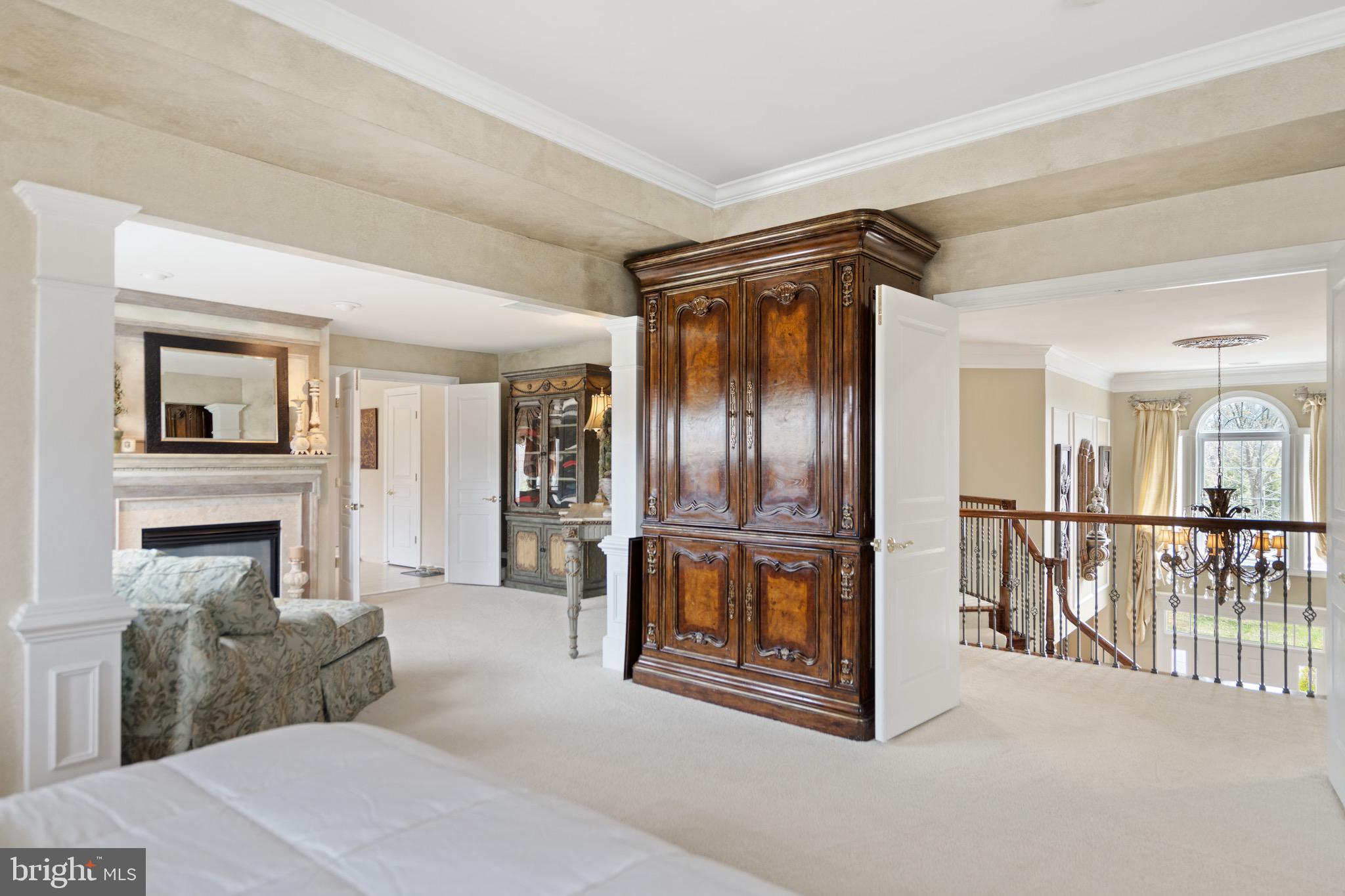 The interior boasts high-end finishes, fine decorator lighting (Currey, Fine Art...) custom silk draperies, and an expansive luxury kitchen with optional Chef's kitchen upgrade. The sought-after Chatsworth Model is the most desirable model with four spacious bedrooms and four en-suite baths upstairs, a grand two-story entry with curved staircase. Primary bedroom with sitting room, fireplace, expansive walk-in closet with built-ins. Sixth bedroom and 5th full bath in the lower level (in-law or au pair suite), gym, ample storage, wet-bar with full fridge/wine fridge, media area, bedroom (no window but used as bedroom). Updates and options were curated with higher-end finishes from lighting to cabinetry, crown molding.