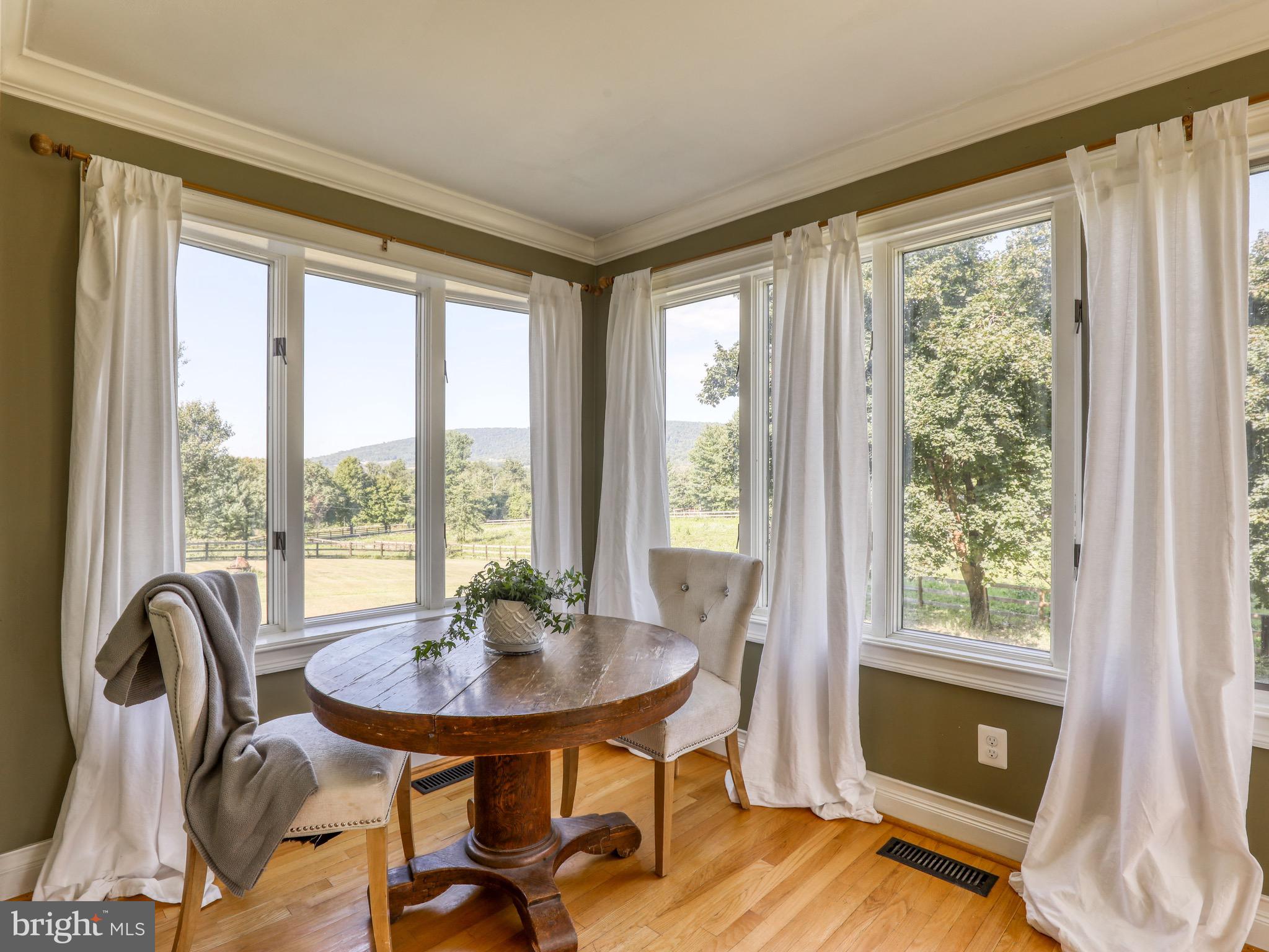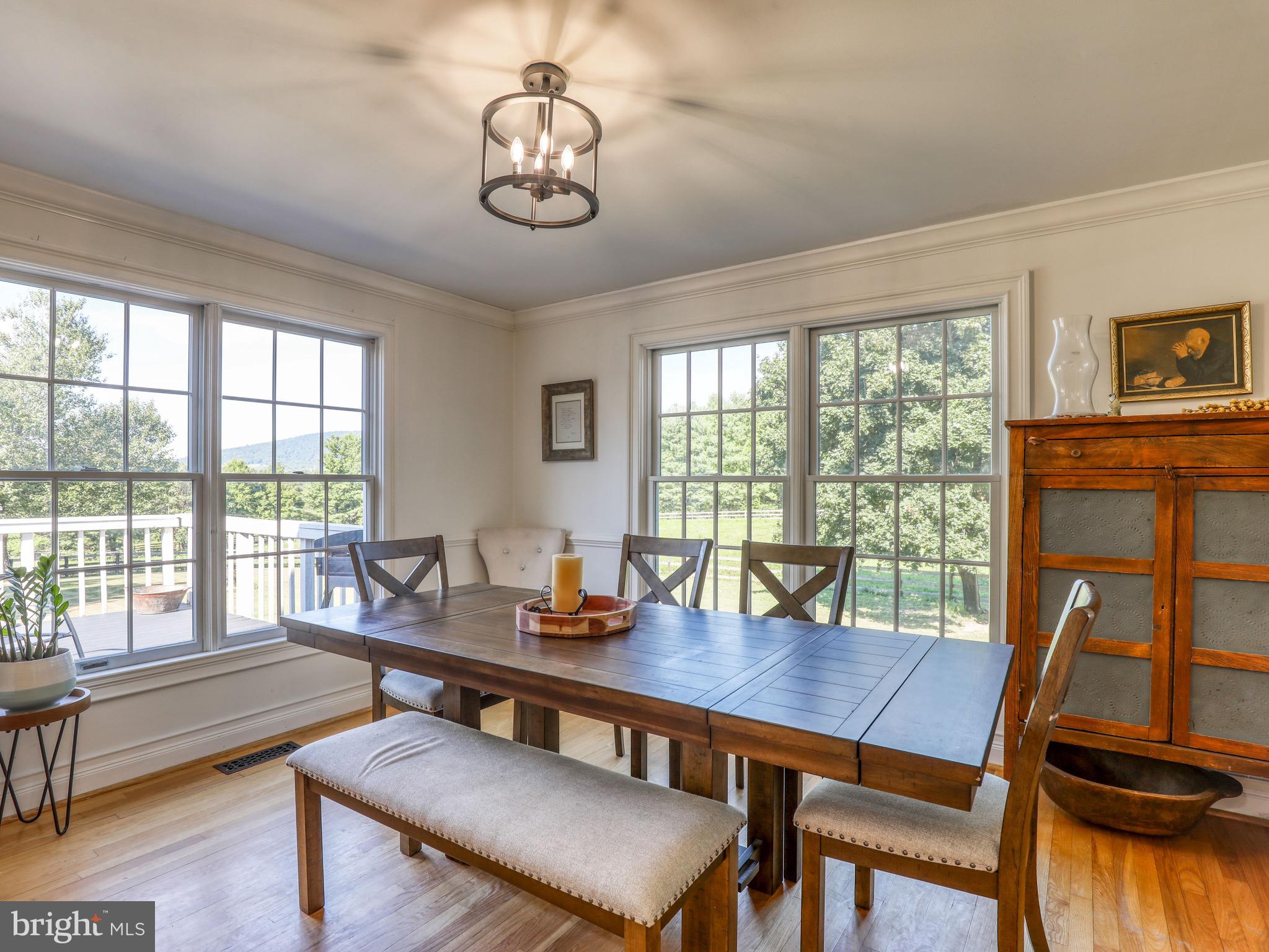 Scenic mountain views with almost 5 level acres on Historic Snickersville Turnpike in coveted Bluemont, non HOA. Enjoy the quiet country lifestyle with the ability to have farm animals, star-filled nights, gardens and so many options. Horse-ready with fenced pastures, 4 stall barn with tack room and office space, run-in shed. Newly finished insulated detached garage/workshop or could be converted to two car garage.. New stone Patio (2022), Trex deck and screened-in porch with pastoral/mountain views. Amazing deal for nearly 5 acres with a barn, fencing and mountain views. Don't miss it. Just a few minutes and easy access to Rt. 7 for an easy commute. 10 minutes to Purcellville. High speed internet.