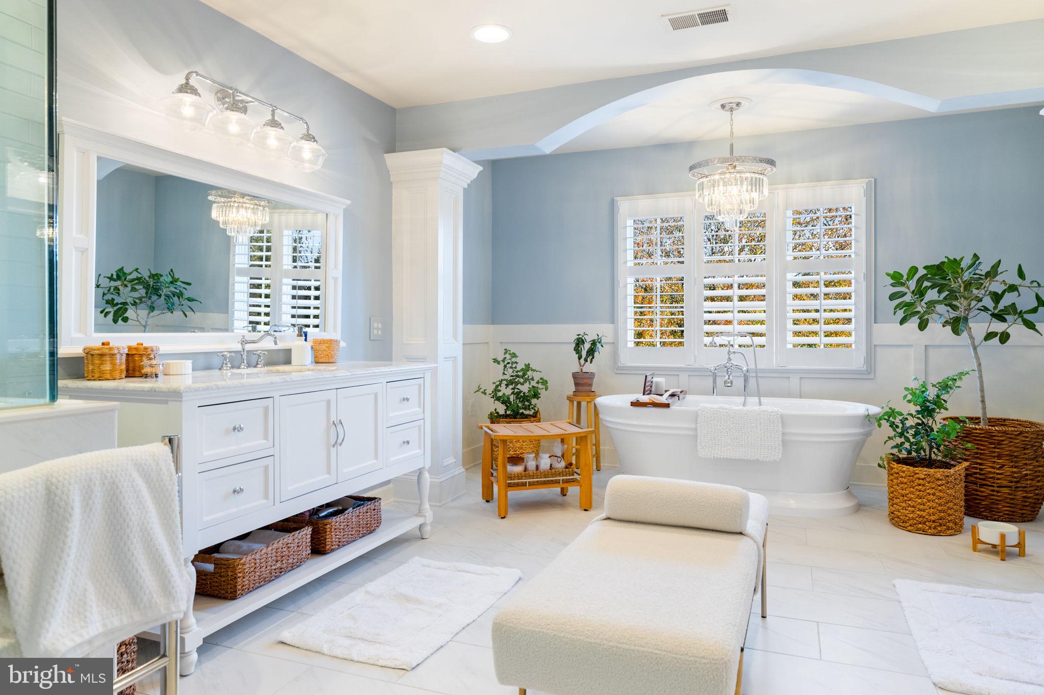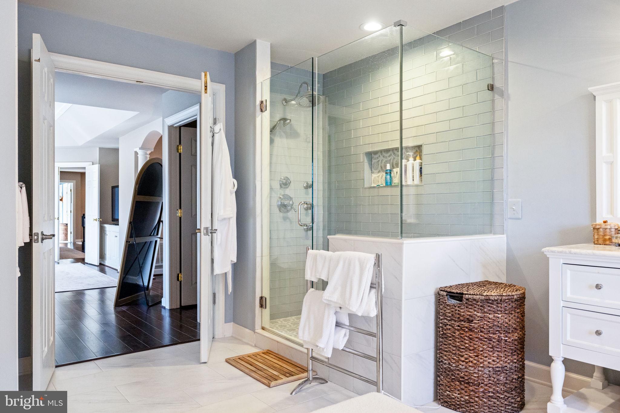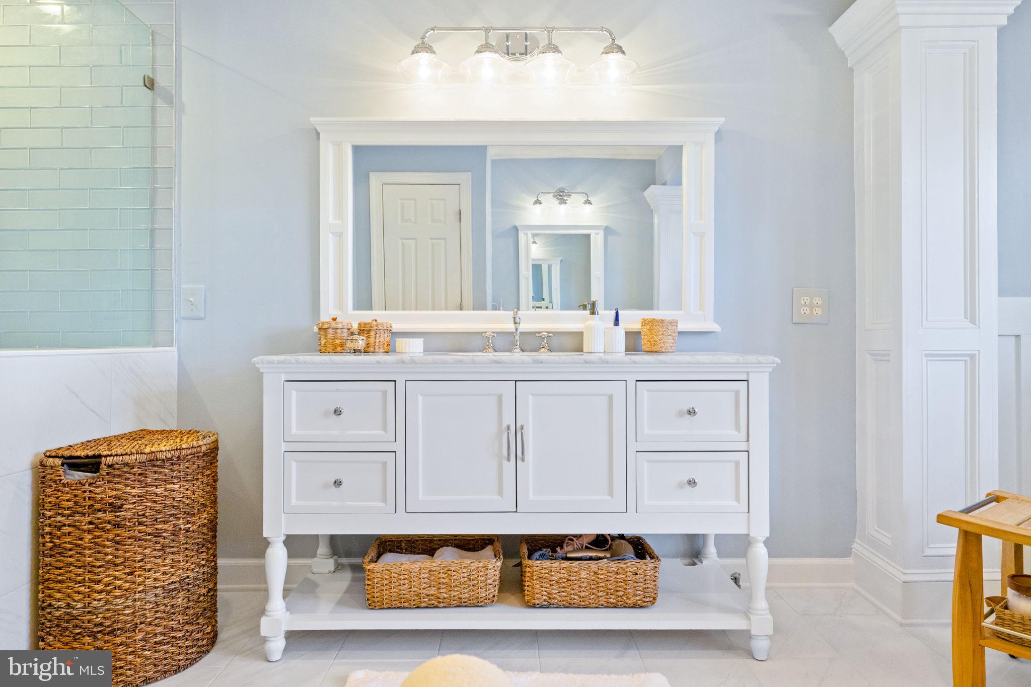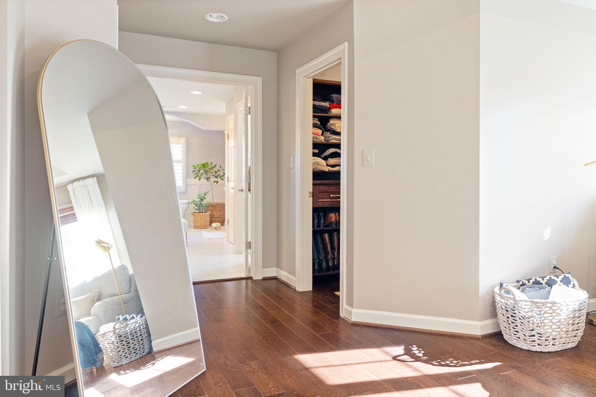 The 3rd level has 5 bedrooms and 4 full baths. Two of the bedrooms are ensuite while the other two feature a Jack/Jill style bathroom. The primary suite has a board and batten ceiling for added design. An additional sitting room with built-in cabinetry makes the room great for reading, office space, or converting to a nursery. Two walk-in closets, an oversized shower, soaker tub, and two separate sink/vanities complete the room.
