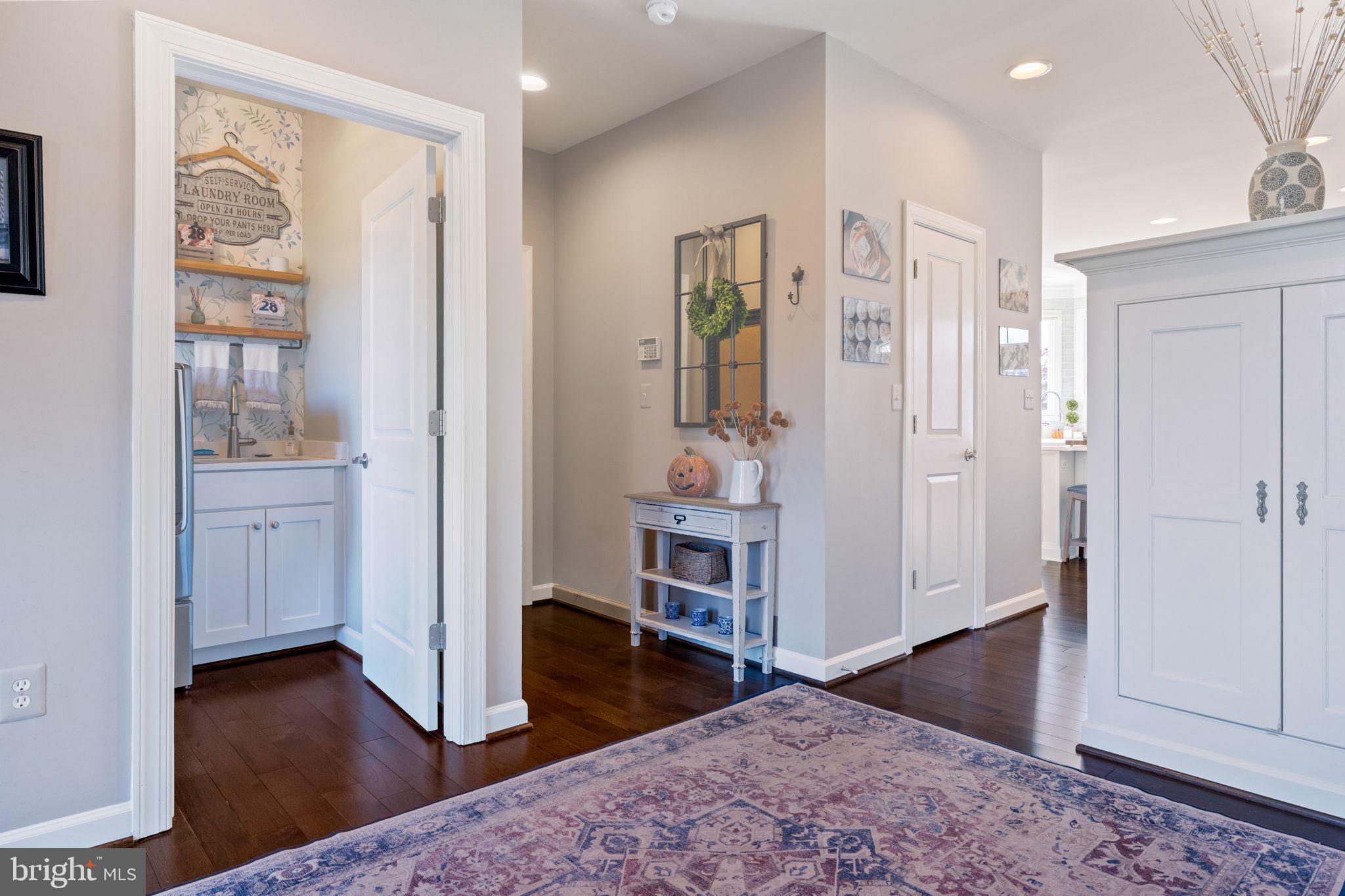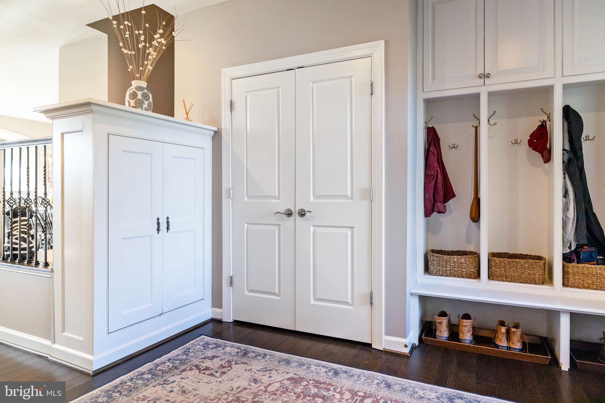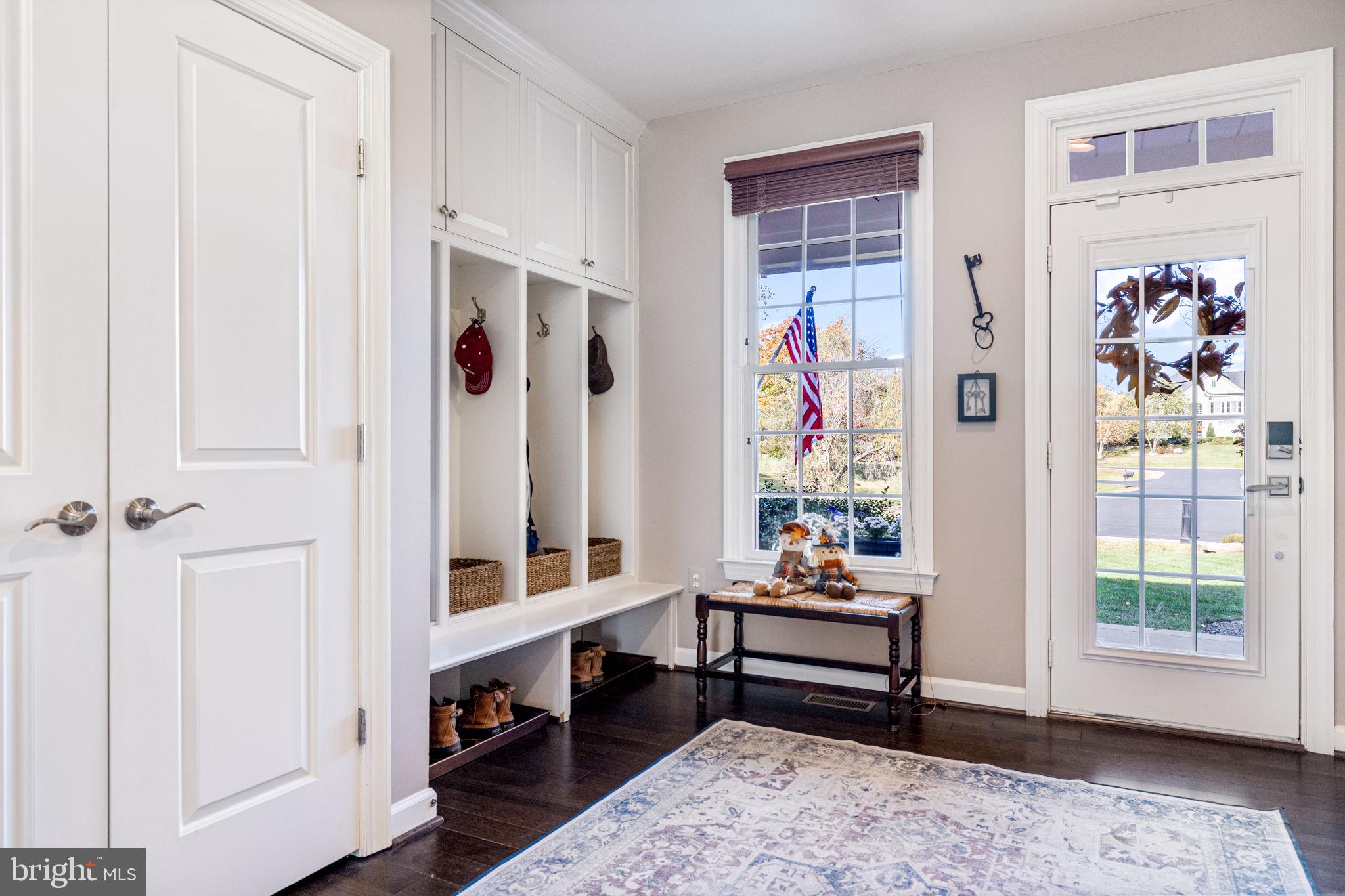 This Somerset model provides two separate front door entry points. Yes, it has your traditional formal front door of course but also offers an auxiliary entrance into a "mud room" equipped with custom built cubbies for kids plus all your accessories for the dog(s)...and conveniently located next to the laundry room! The main level features 9 ft. ceilings with beautiful hardwood floors that extend through both the first and second levels. Several of the bedrooms upstairs have carpet.