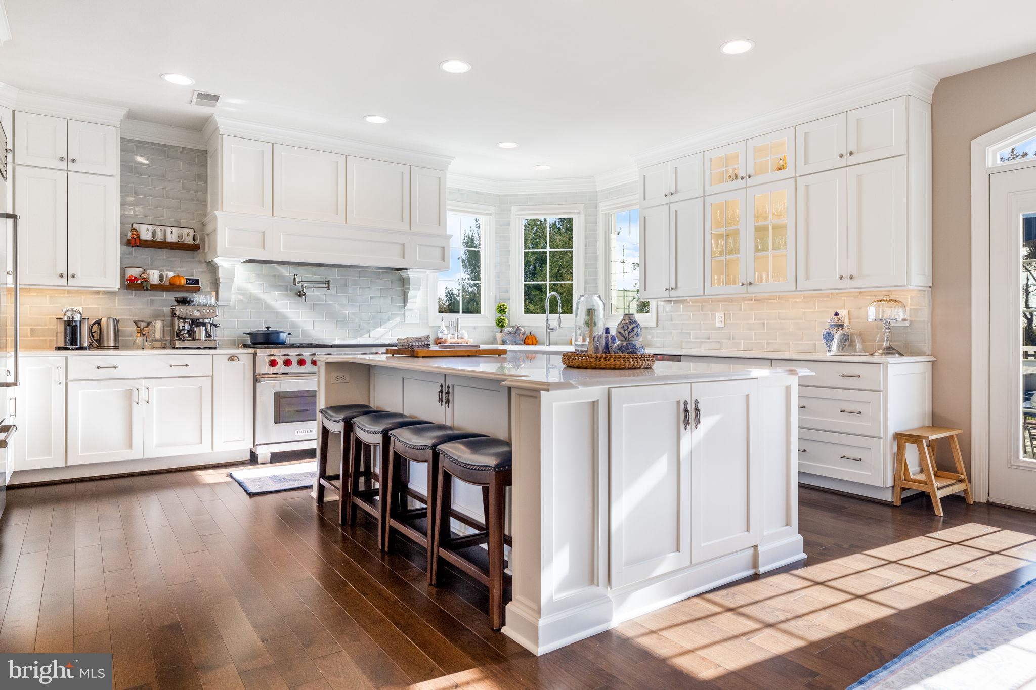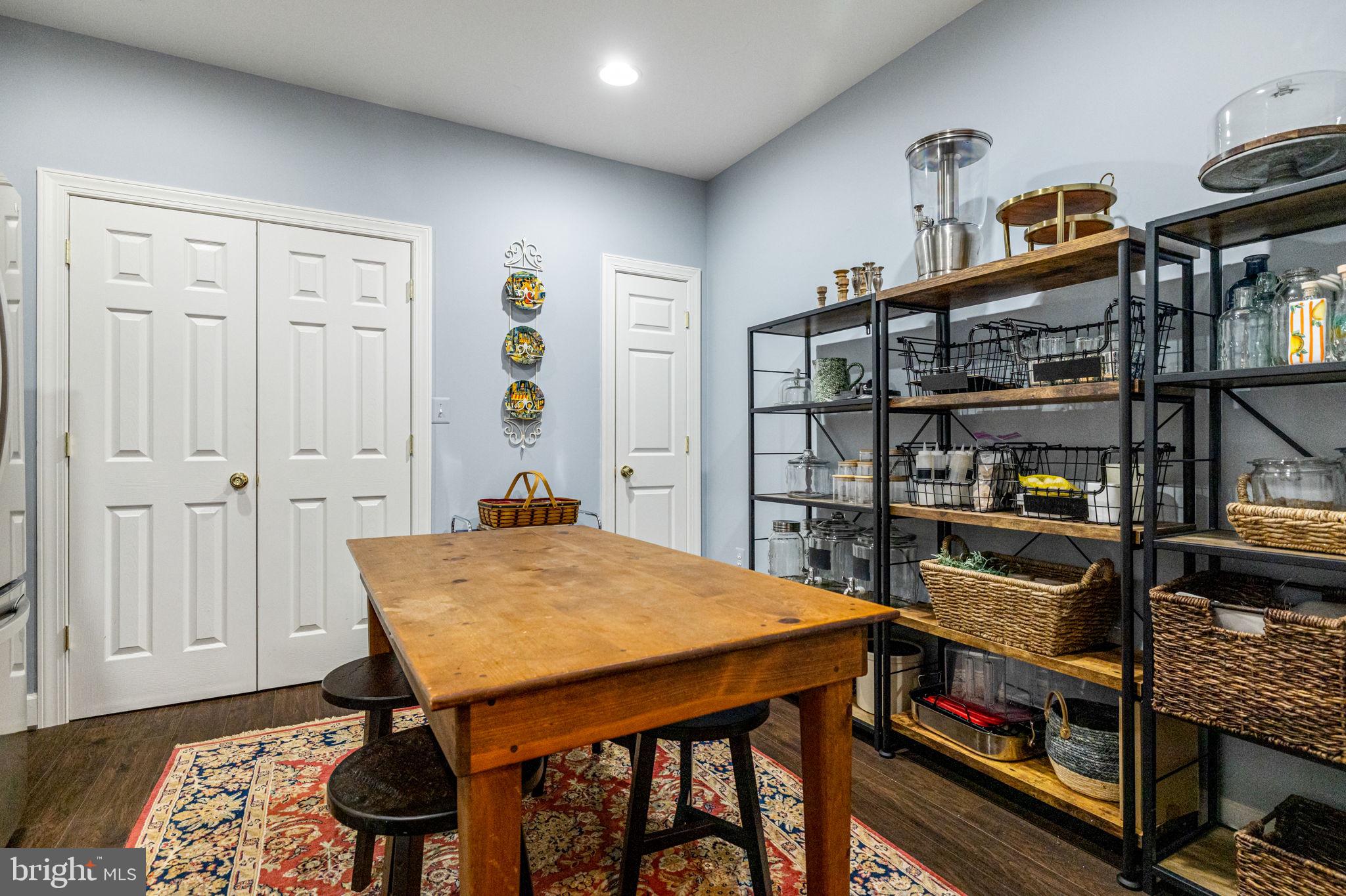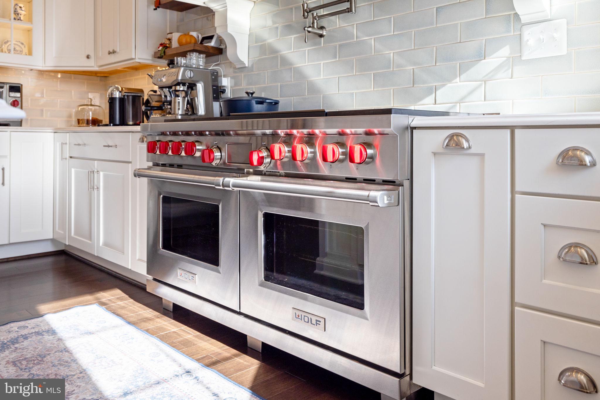 This kitchen will make a chef proud. In addition to a sub-zero refrigerator, you'll love cooking on the 60-inch dual fuel (gas stove and electric oven) Wolf stove. Ample cabinet space and counter area surround the huge over-sized island. The kitchen and dining area look out over the outdoor deck and pool area with views of surrounding acreage. The deck has composite planking with PVC railings for minimal maintenance and maximum durability.